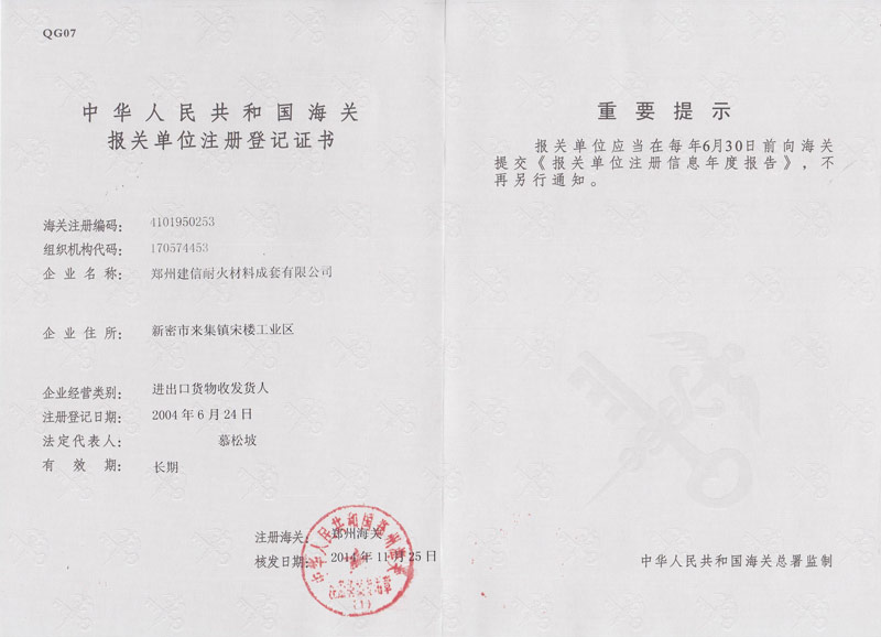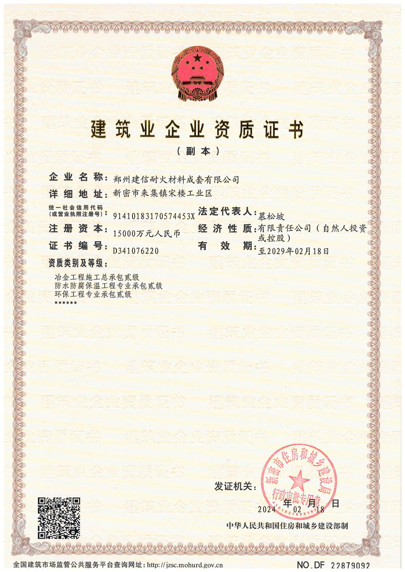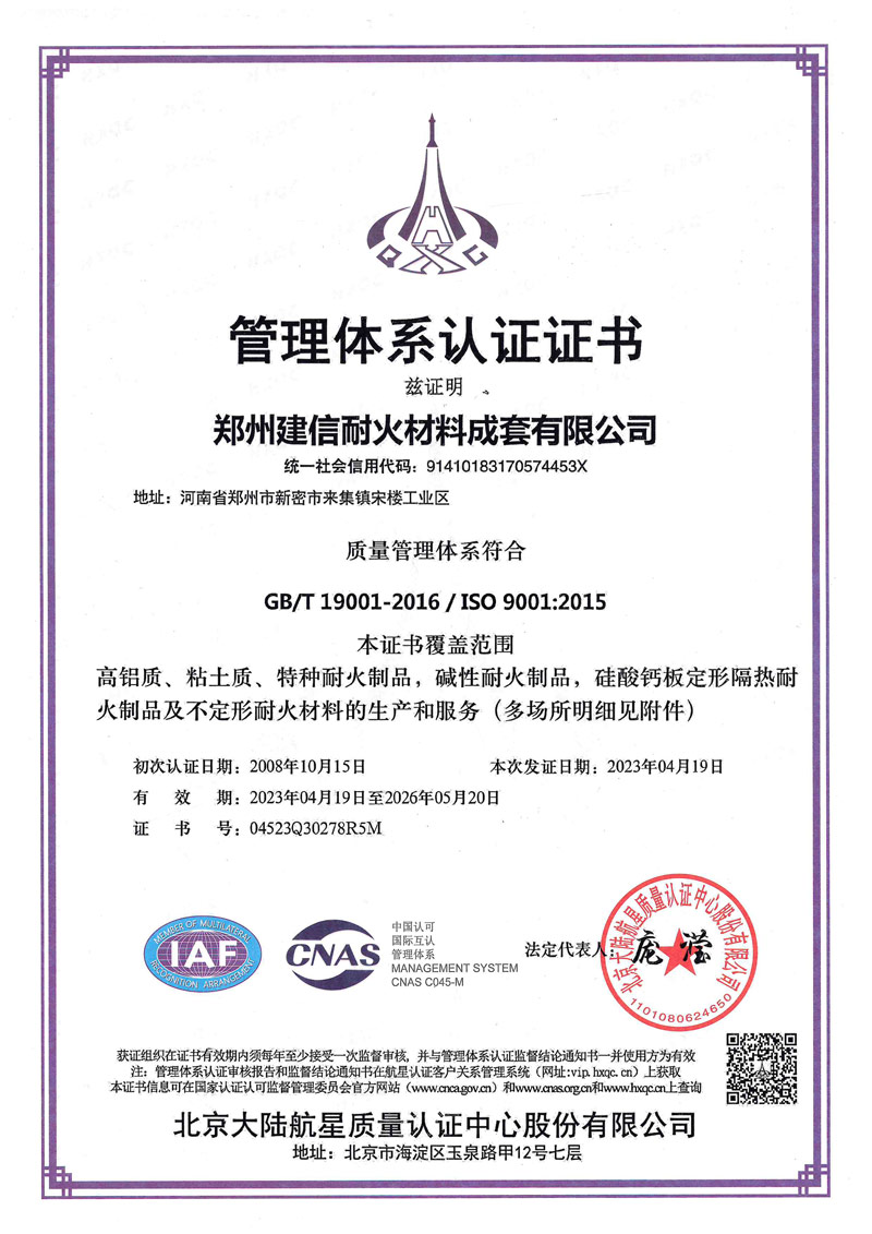 鄭州建信耐材先后參與起草國家建材及行業(yè)標準:《高鋁抗剝落磚、系列耐堿磚及系列硅莫磚》、《水泥回轉(zhuǎn)窯協(xié)同處置用耐火材料抗侵蝕實驗方法》、《耐火材料及砌筑使用規(guī)程》和《石灰窯砌筑技術條件》。公司近年來先后榮獲“國家科技型企業(yè)”、“高新技術企業(yè)”、“河南省綠色工廠”“河南省綠色發(fā)展先進型企業(yè)”“環(huán)??冃級企業(yè)”、鄭州市“專精特新企業(yè)”“市長質(zhì)量獎”等殊榮。