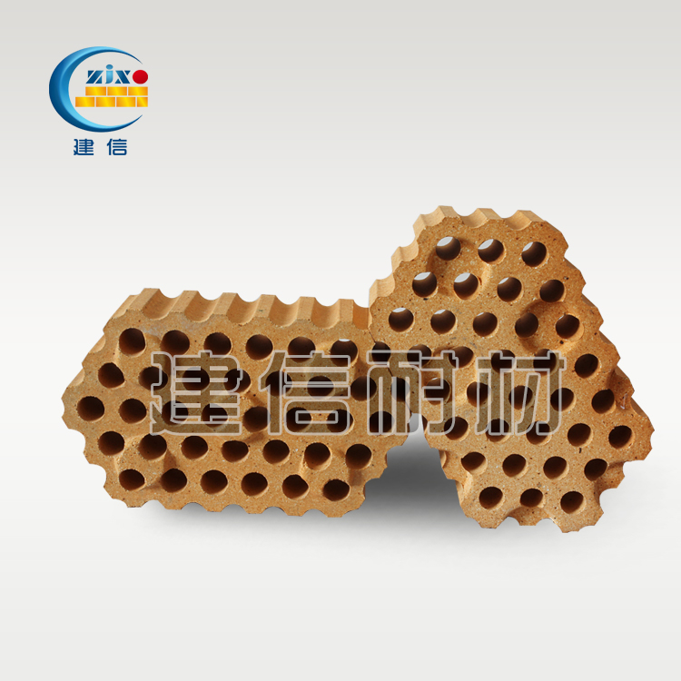 粘土格子磚是以耐火黏土(Al?O? 35%-48%)為主料,添加藍(lán)晶石等膨脹劑,經(jīng)高壓成型與1300-1400℃燒結(jié)制成的蓄熱體專用耐火材料。其特點包括: